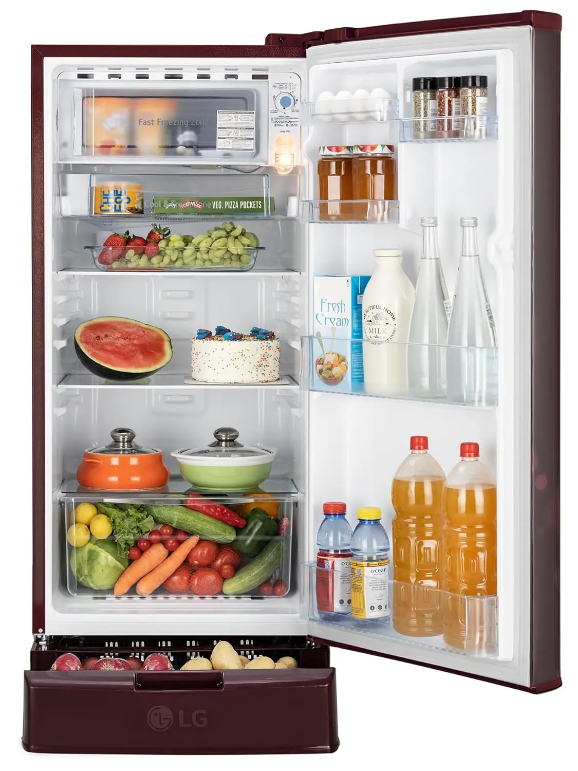 - LG 185L 4-Star (GL-D199OSEY) ek premium single-door refrigerator hai jo 2-3 members ki family ke liye perfect hai. Iska Smart Inverter Compressors silent aur stabilizer-free operation deta hai. 4-star rating ki wajah se yeh electricity bills mein maximum bachat karta hai. Base drawer aur Smart Connect jaise features ise ₹16,000 ke budget mein ek best value-for-money choice banate hain.